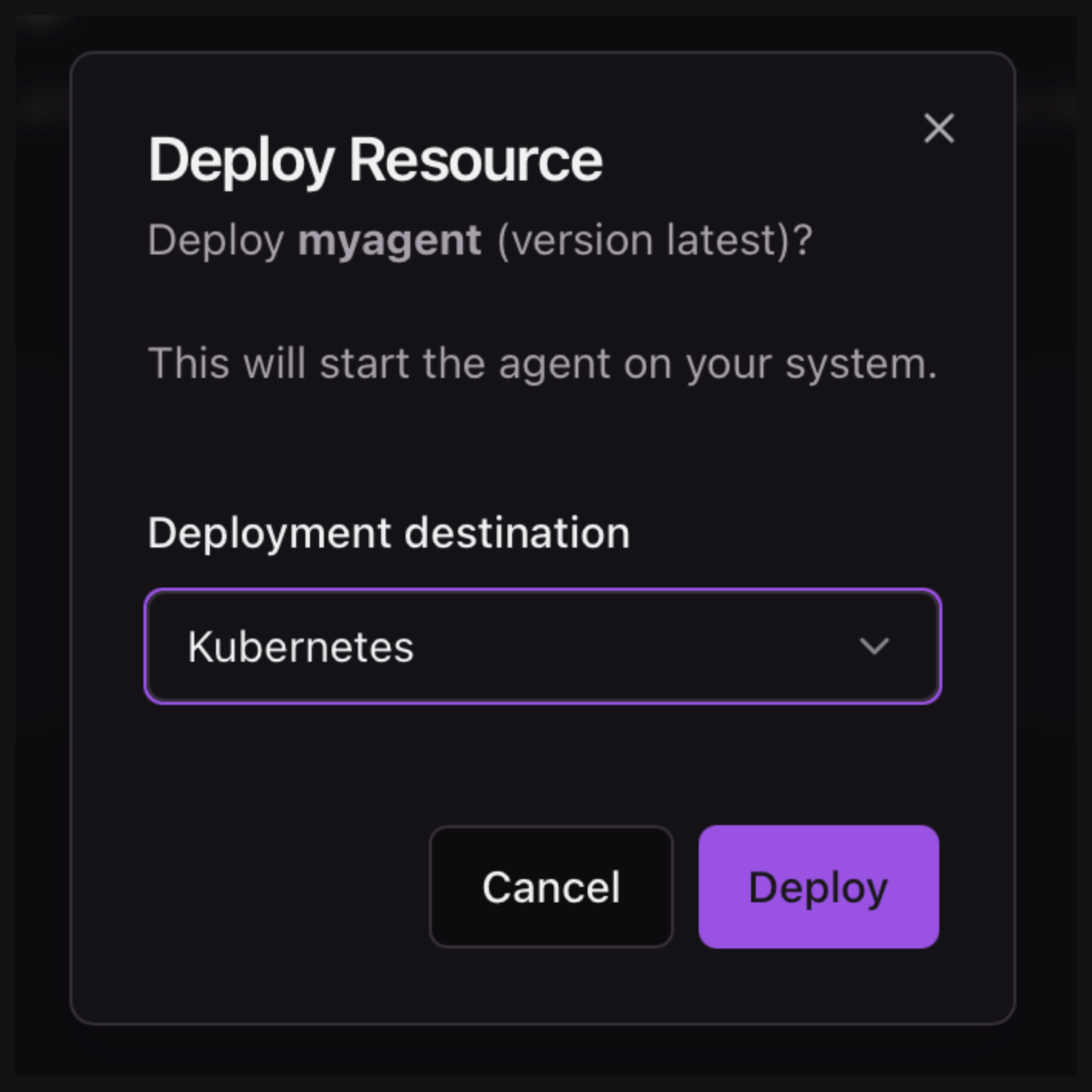 arctl agent deploy myagent --runtime kubernetes --namespace defaultExample output: